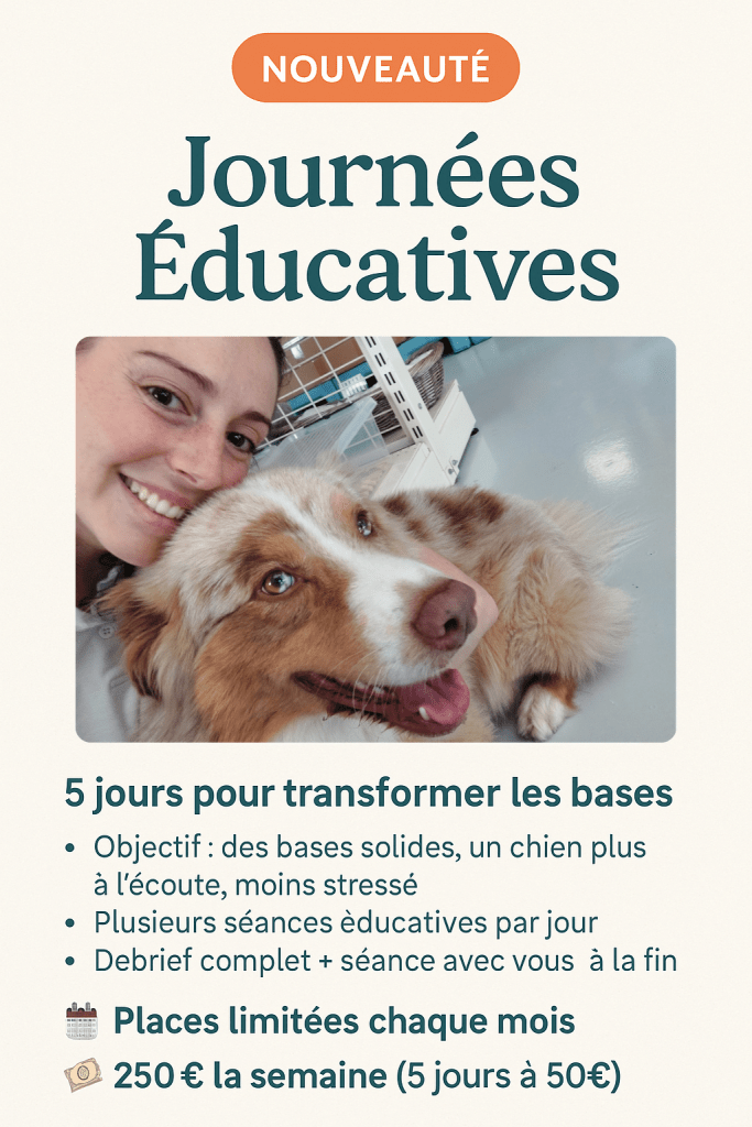Je suis spécialisée dans l’éducation des chiens réactifs. Grâce à des techniques adaptées, je peux vous aider à gérer ces comportements et à renforcer la confiance de votre chien dans différentes situations.