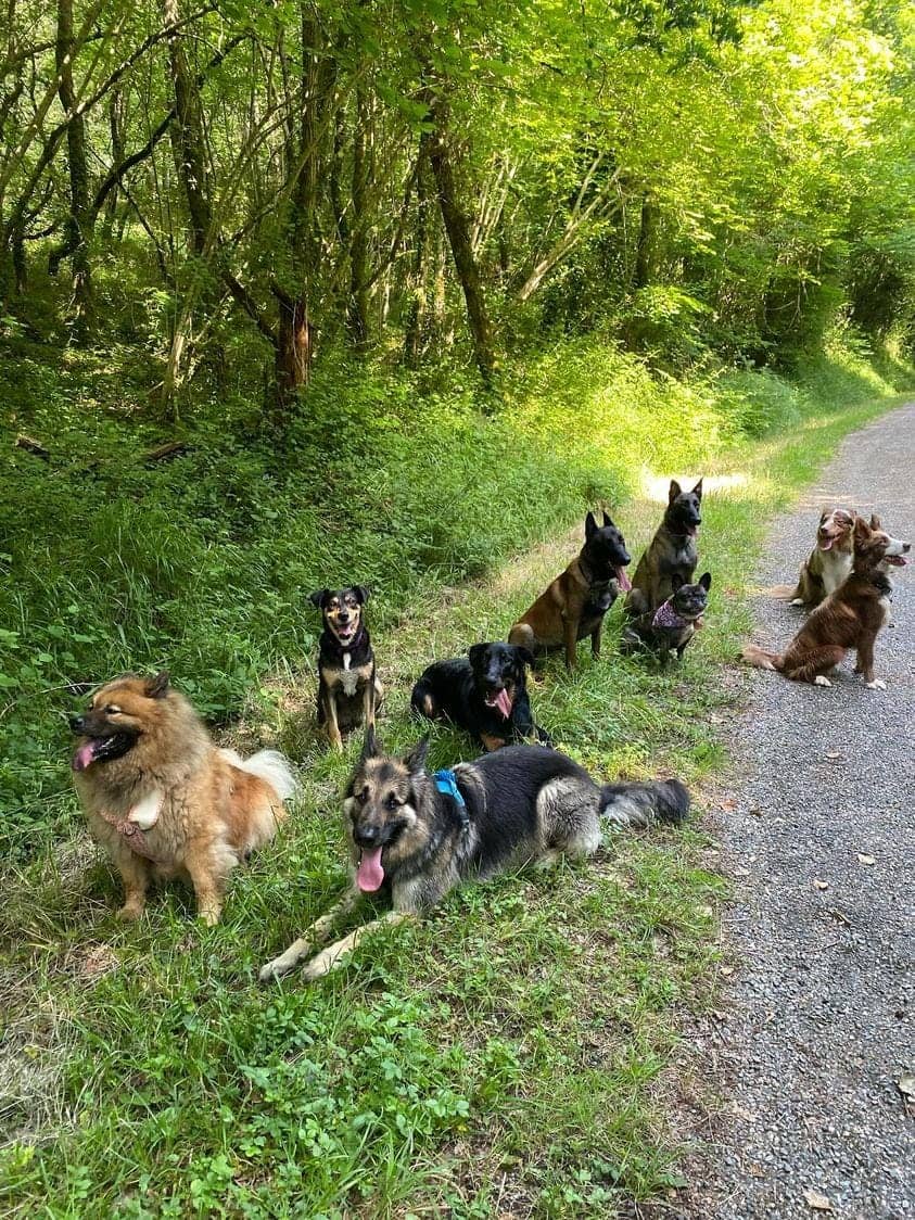 Les groupes sont limités à un maximum de 6 chiens en suive afin de garantir une attention personnalisée et un encadrement de qualité.